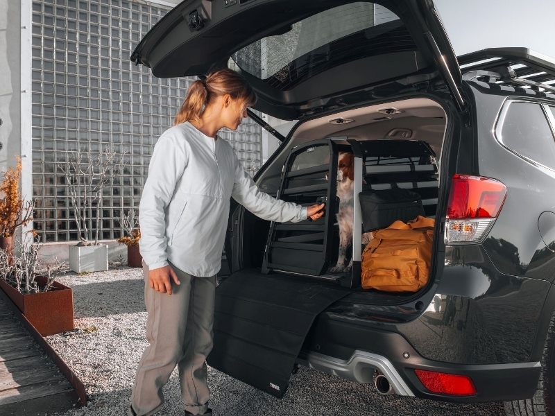 Ontworpen om bescherming te bieden aan zowel honden als mensen:De Thule Allax-hondenbench voor de auto is de perfecte keuze voor veilige en comfortabele autoritten met uw trouwe viervoeter. Deze is grondig getest in ons eigen Thule Test Center en gecertificeerd door TÜV SÜD. De innovatieve kreukelzone biedt superieure bescherming voor zowel passagiers als uw hond. De gasgedempte deur gaat zachtjes open en dicht en de kist heeft een ingebouwd slot voor extra veiligheid.Geluidsloos ontwerp en een perfecte pasvorm:De hondenbench is verkrijgbaar in vijf tot tien verschillende maten (afhankelijk van de markt), allemaal met afgeronde randen voor een perfecte pasvorm voor zowel uw auto als uw hond. Bovendien kan de reisbench voor honden in diepte worden versteld voor een perfecte pasvorm in uw kofferbak, en spanbanden zorgen ervoor dat hij tijdens het rijden stevig vastzit. Goed ontworpen en goed gebouwd – er komt geen geluid of geratel uit deze premium hondenbench.Leef een actief leven met uw hond:De Thule Allax biedt geavanceerde bescherming en comfort voor zowel korte trips als lange ritten. Door de superieure veiligheidsvoorzieningen, het gebruiksgemak en het comfort is er geen betere manier om uw hond veilig mee te nemen dan met deze betrouwbare transportbench voor honden van Thule.Maten (W*H*D): 65 * 65 * 77 - 82 cmGewicht: 22 kgDraagvermogen: 35 kg